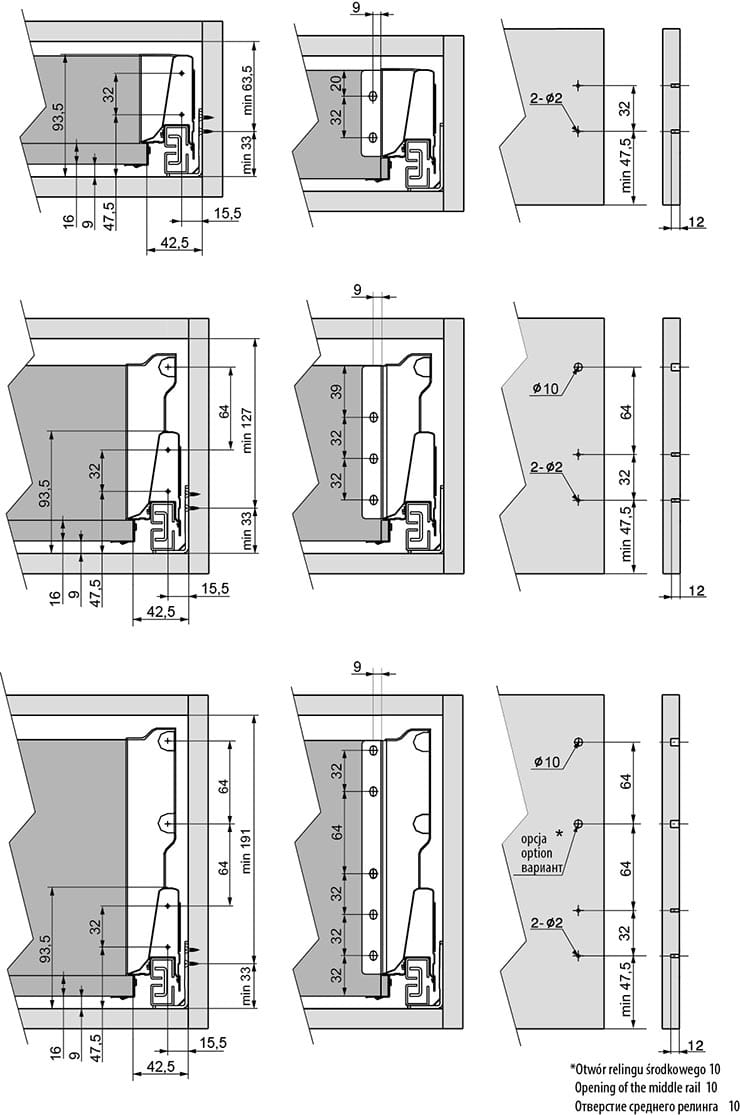 | Opcje wysuwu | Pełny wysuw |