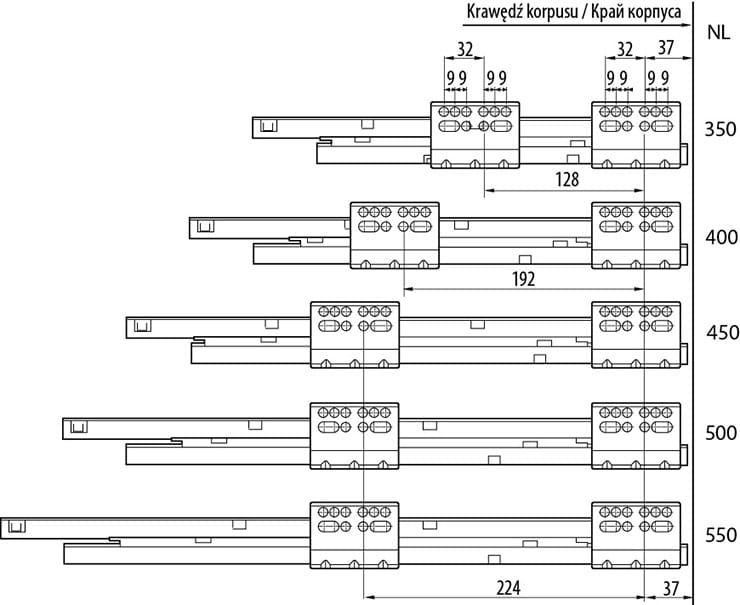 - Parametry montażowe korpusu i szuflady pozostają niezmienne