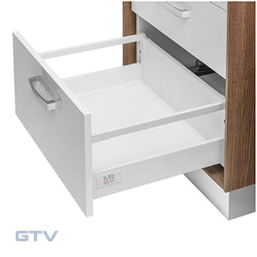 System Modernbox Square wyróżnia się nowoczesną stylistyką stawiającą na minimalizm. System posiada cichy, precyzyjny domyk.
