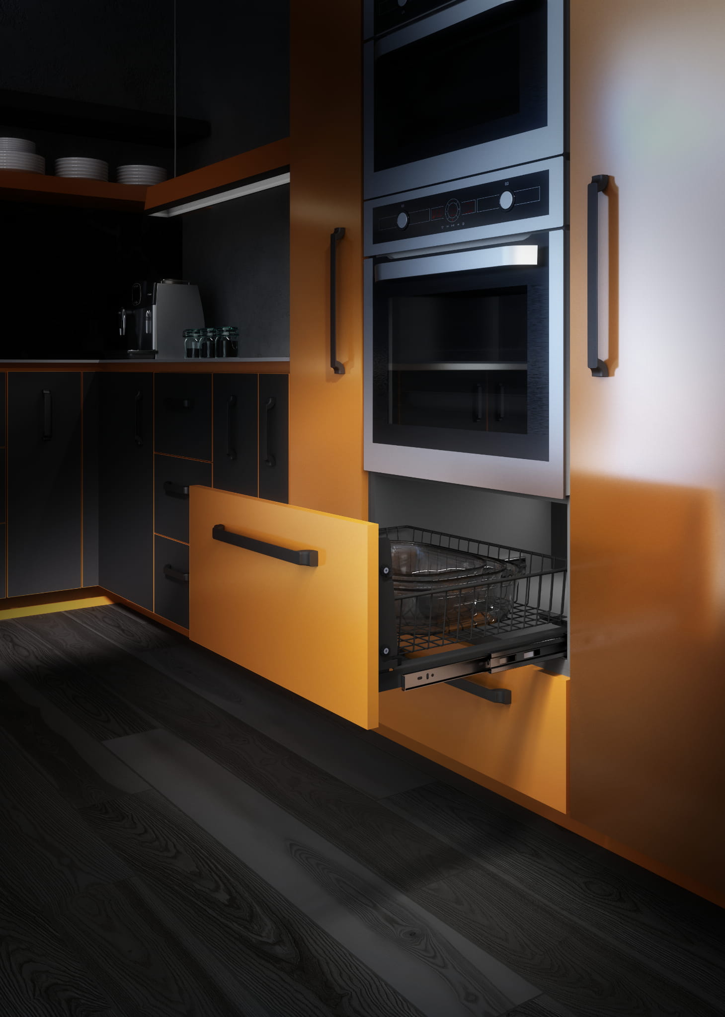 Szuflada cargo z mocowaniem do frontu, 600 mm, cichy domyk, pełny wysuw, antracyt