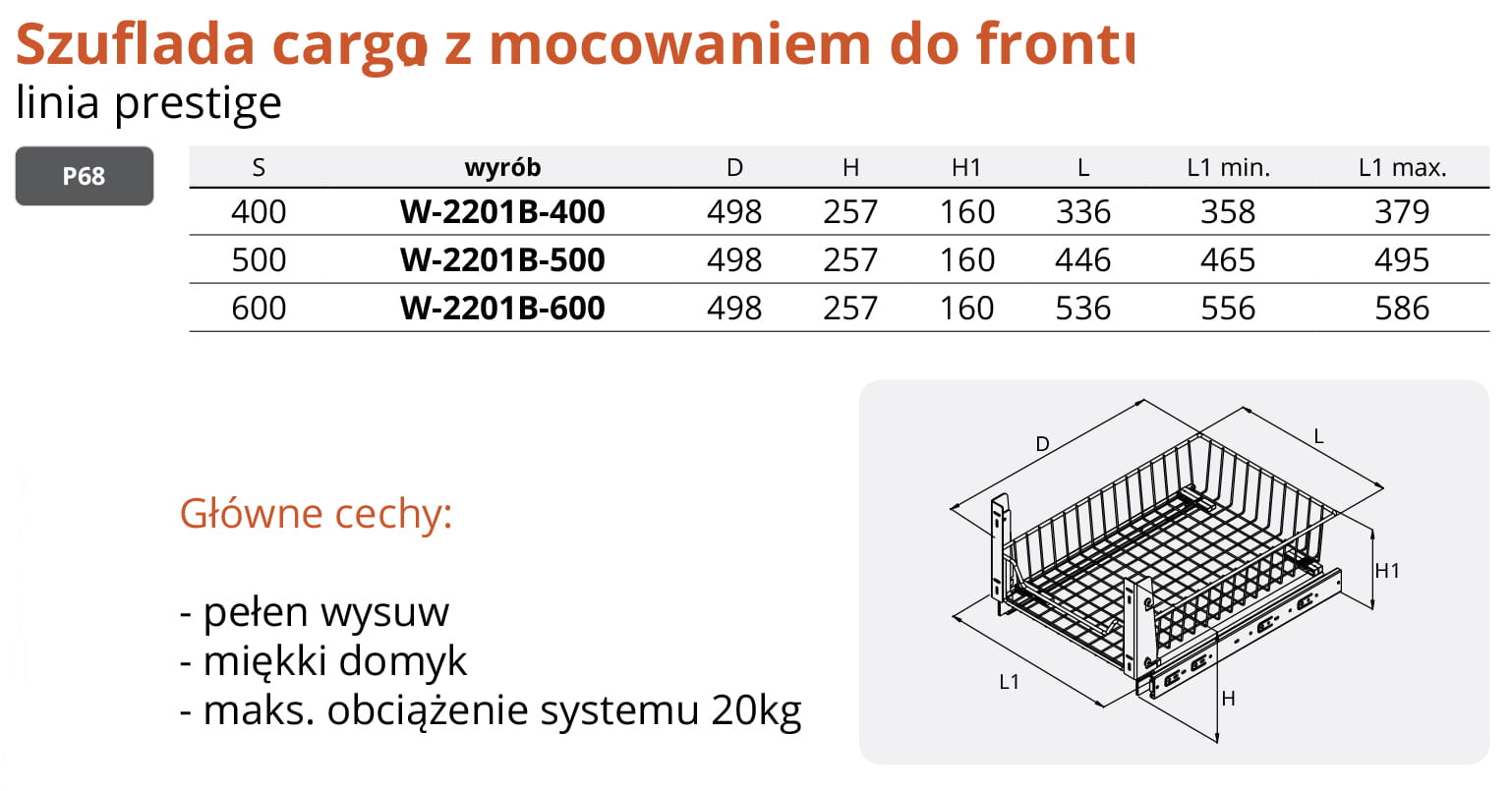 Szuflada cargo z mocowaniem do frontu