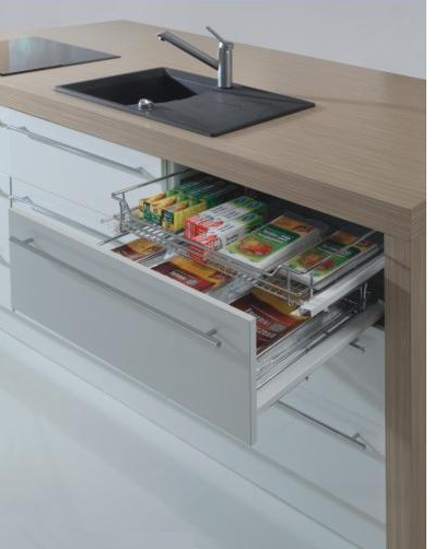 Szuflada do kuchni garderoby, dolna z mocowaniem frontu, do szafki 60 cm, Srebrny
