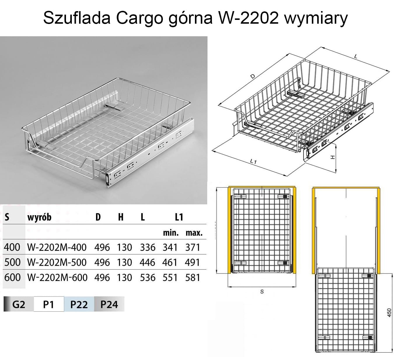 Szuflada do kuchni garderoby, druciana górna, do szafki 40 cm, Biała