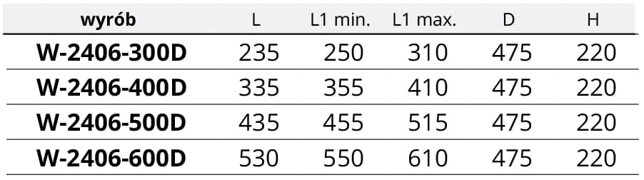 Uprzejmie prosimy o dokładne zapoznanie się z wymiarami zawartymi w tabeli w galerii produktu