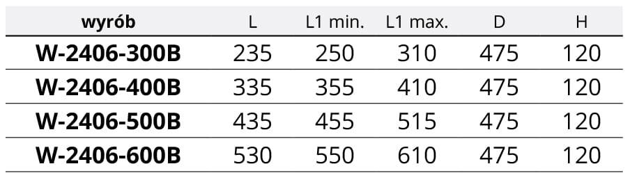 Uprzejmie prosimy o dokładne zapoznanie się z wymiarami zawartymi w tabeli w galerii produktu