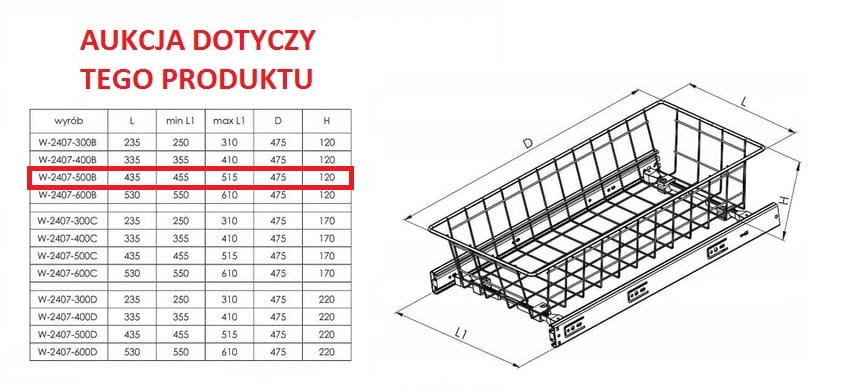 Szuflada druciana wewnętrzna do szafki o szerokości 50 cm