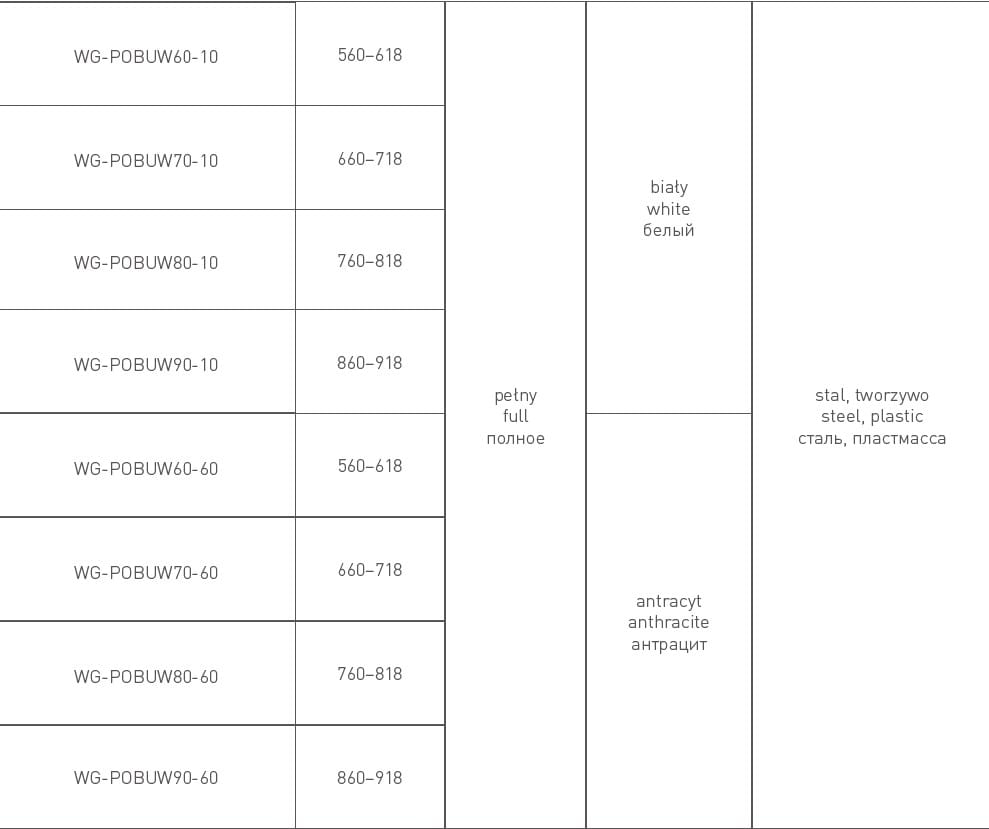 - Do szafki o wewnętrznych wymiarach: 560-618 mm (dokładne wymiary w galerii produktu)