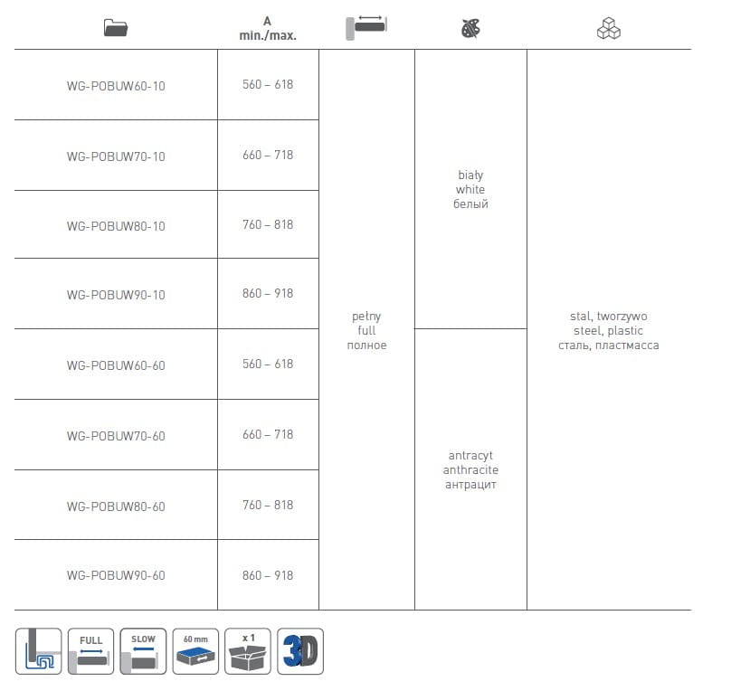 - Możliwość regulacji szerokości szuflady