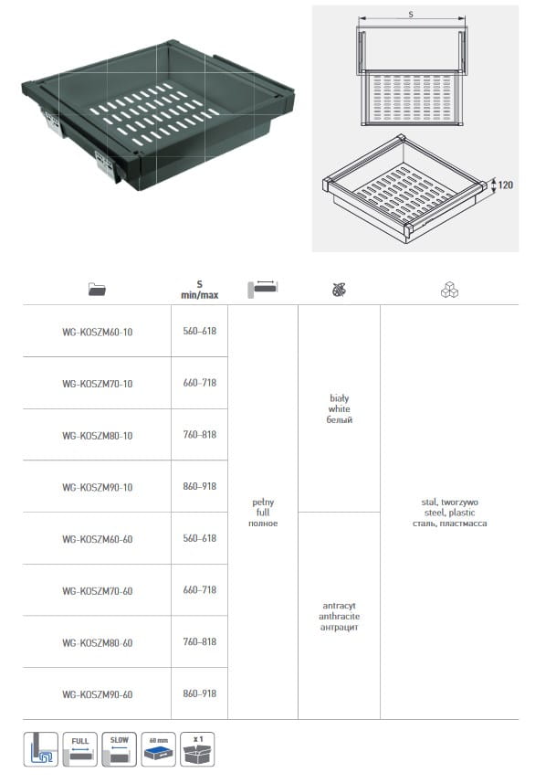 Szuflada z metalowym koszem ELITE 800mm, cichy domyk, pełny wysuw