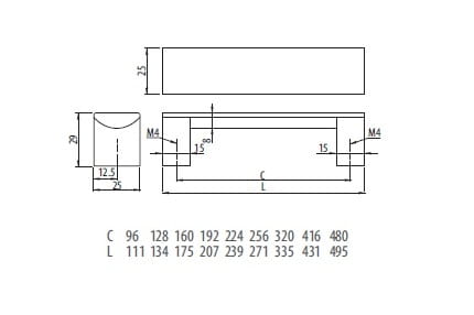 Uchwyt Meblowy UA-B337, Aluminium mat, 224 mm
