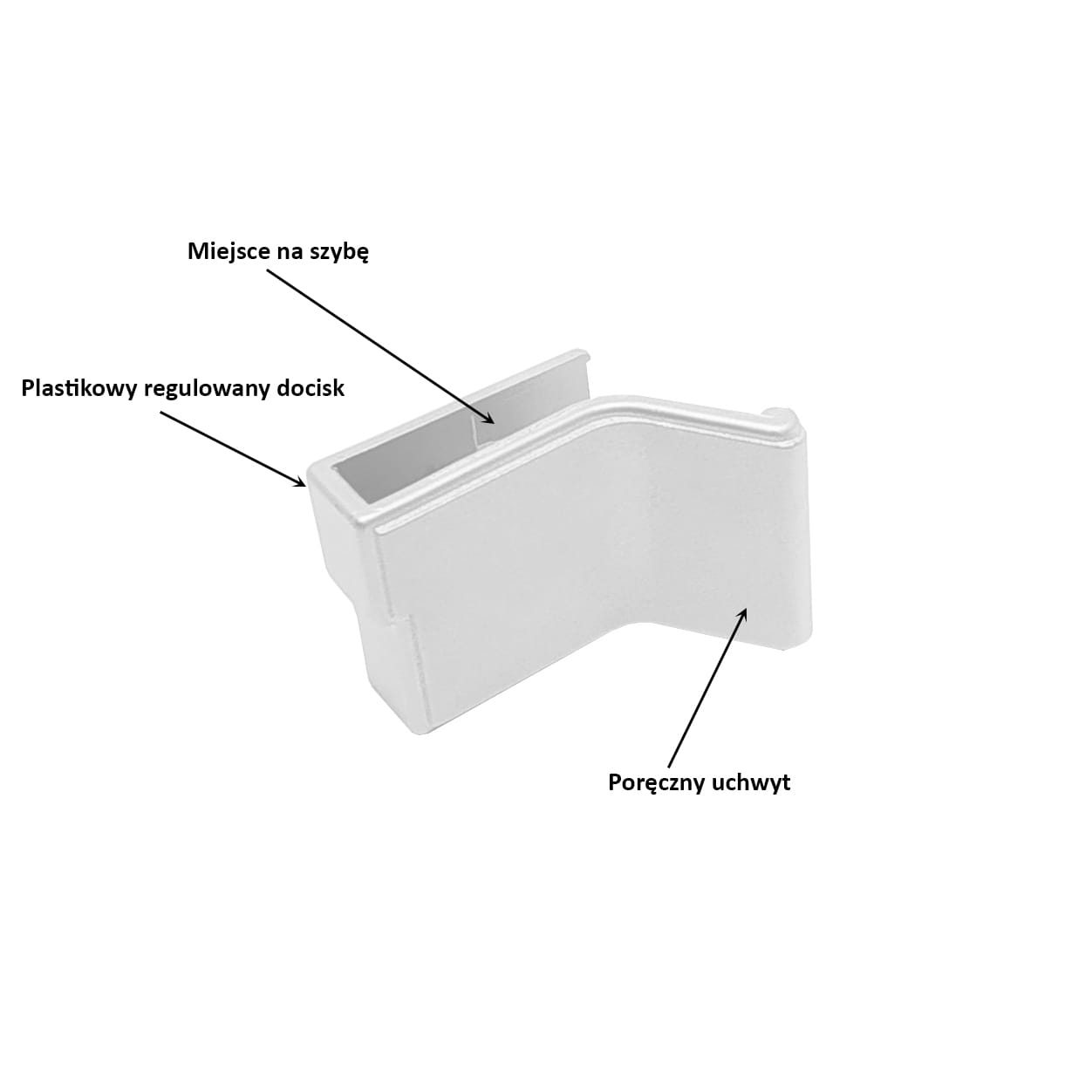 Uchwyt do drzwi szklanych stosowany do utrzymania drzwi na zasadzie zacisku. ie trzeba wiercić otworu w szkle.