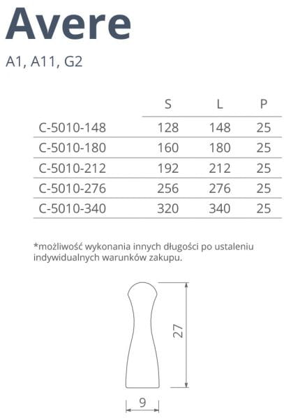 Uchwyt meblowy AVERE C-5010, stal szczotkowana inox, 192mm