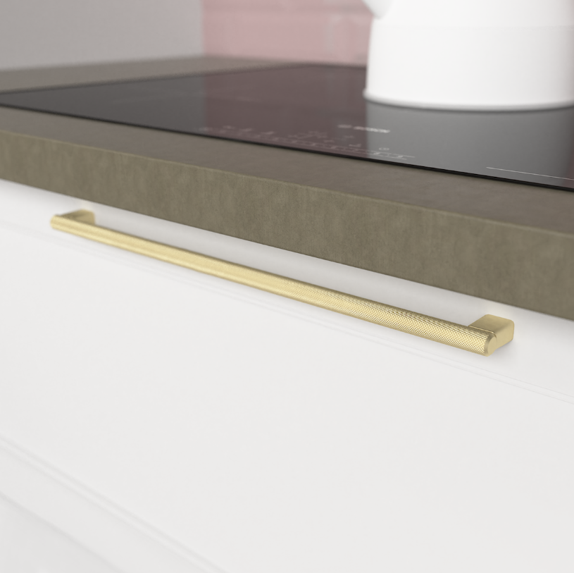 Nowoczesny uchwyt meblowy z unikalnym prążkowanym wzorem.