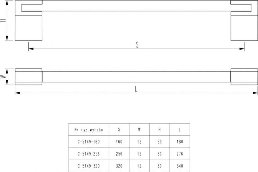 Uchwyt meblowy PERO C-5149, czarny połysk + chrom, 256mm