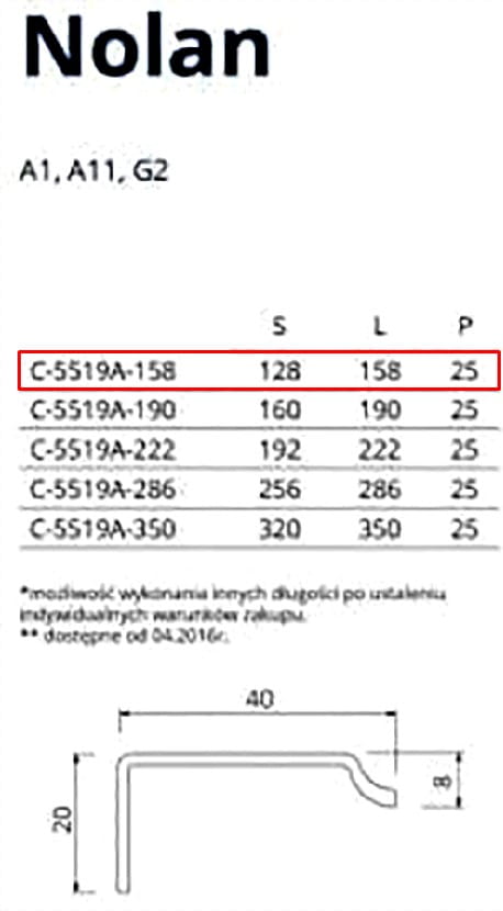 Uchwyt krawędziowy Nolan, całkowita długość: 158 mm