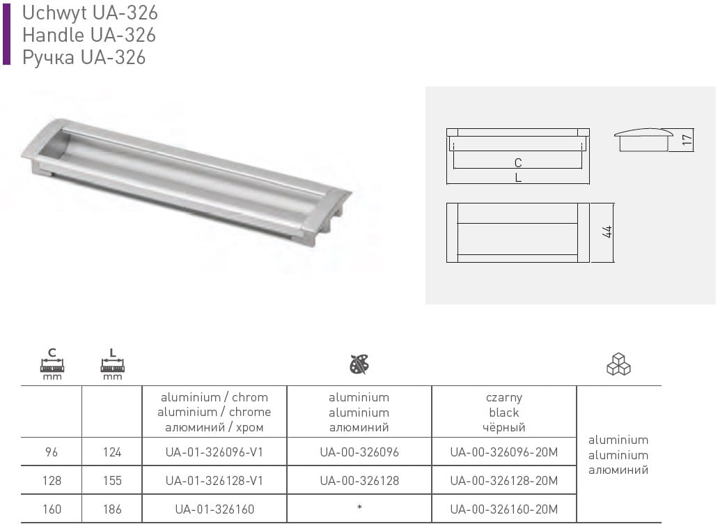 Uchwyt meblowy wpuszczany UA-326, czarny mat, 128mm