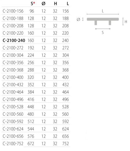Uchwyt relingowy SANTA CRUZ C-2100, satyna mat, 288mm