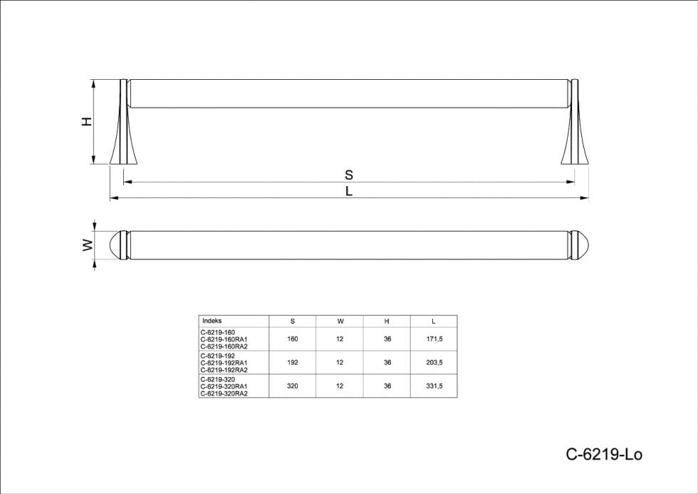 Uchwyt relingowy meblowy NATALE C-6219, złoto matowe szczotkowane + czarny mat, 192mm