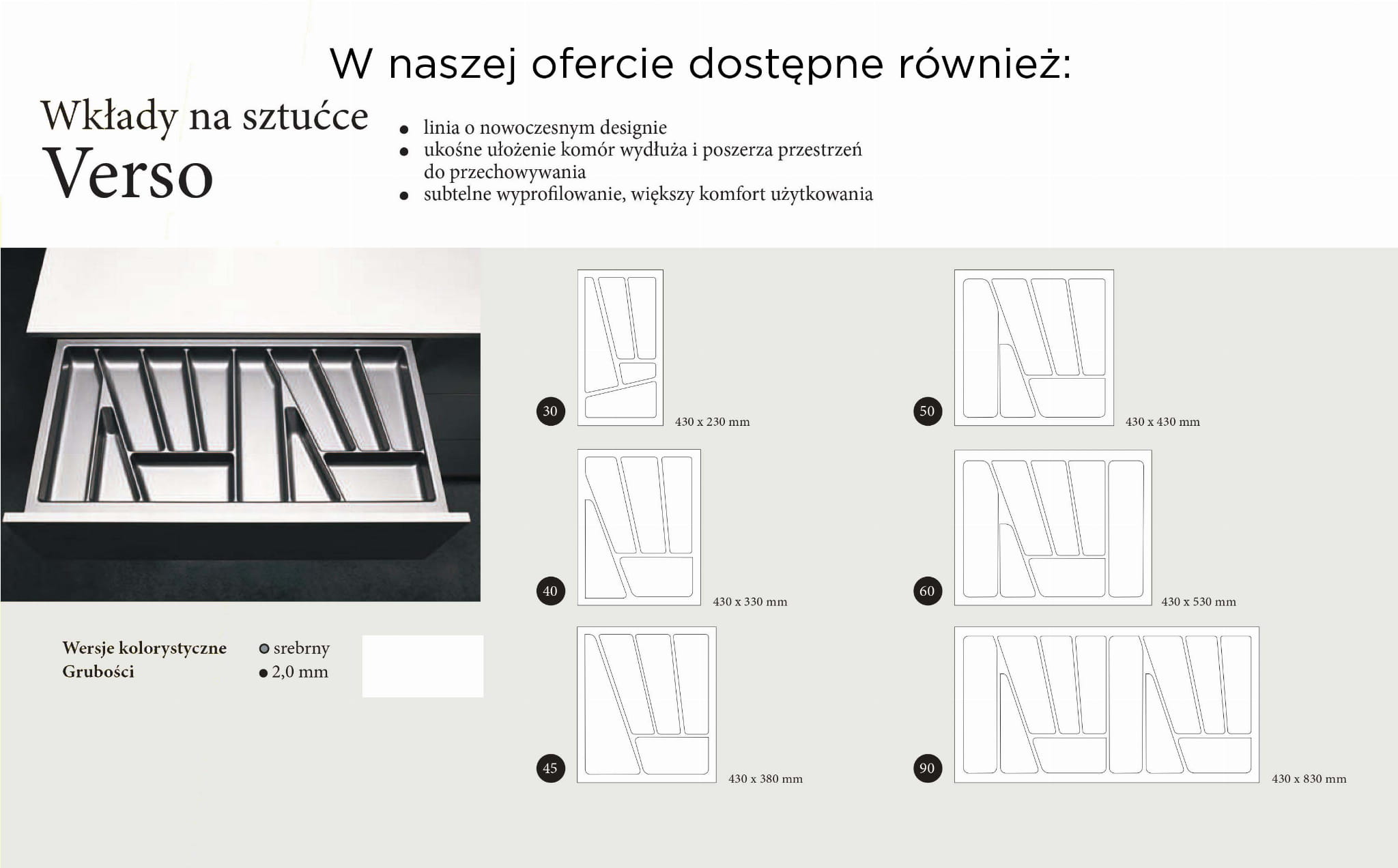 Wkład do szuflady "40-stki" na sztućce VERSO gł. 430 mm