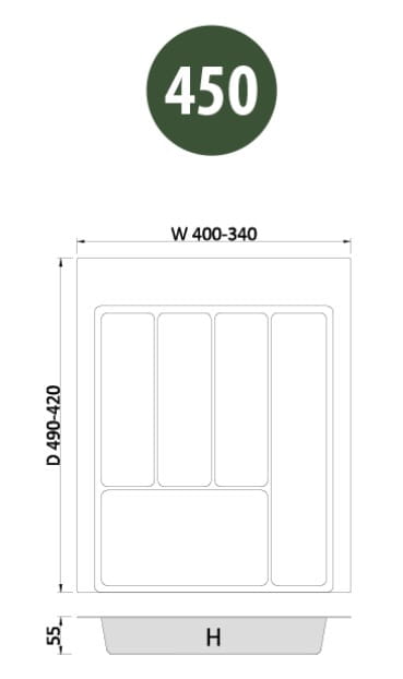 Wkład kuchenny na sztućce szufladowy MAX 45 340-400x490 grafit