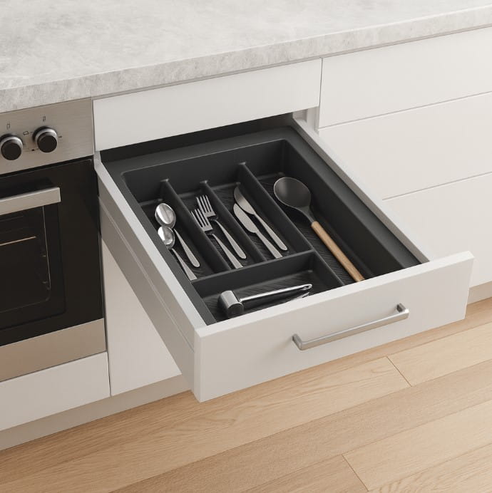 Dzięki wkładom MAX zyskasz porządek w szufladach, komfort codziennego użytkowania oraz estetyczny wygląd kuchni.