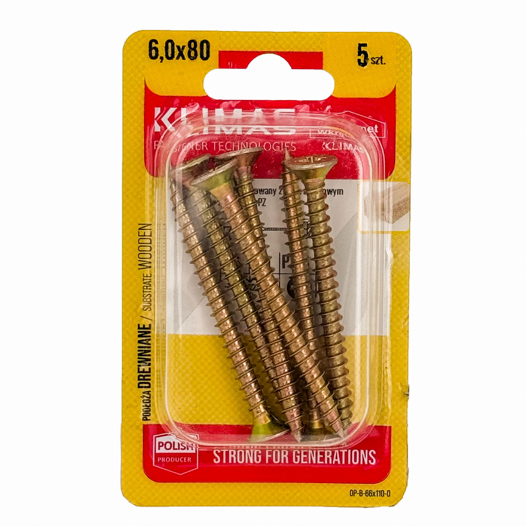 Wkręty hartowane konfirmaty do drewna, fi 6.0x80 mm, blister 5 szt. WKRĘT-MET