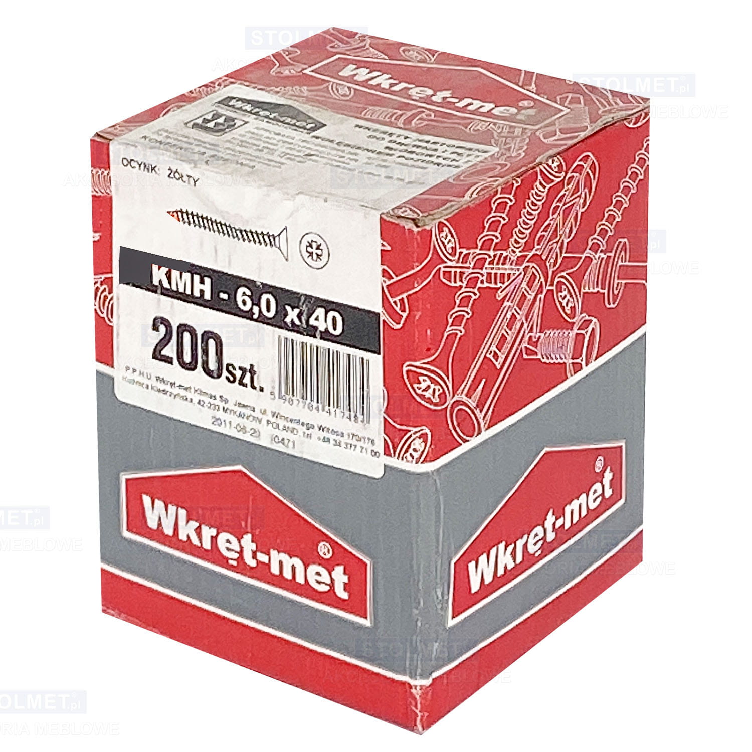 Wkręty hartowane konfirmaty do drewna, fi 6x40 mm, 200 szt. WKRĘT-MET