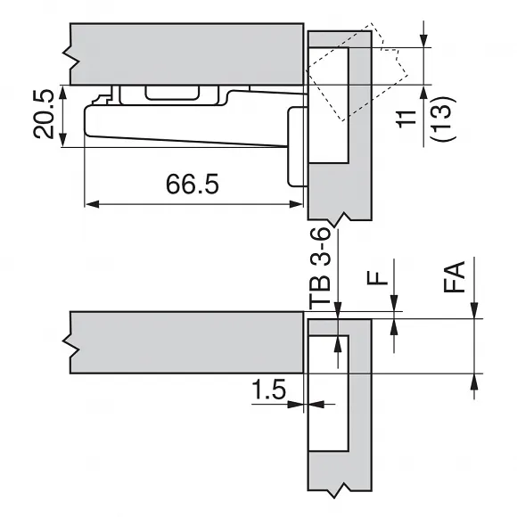 - zawias CLIP TOP bez sprężyny do systemu AVENTOS i TIP-ON