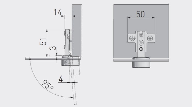 Zawias łatwo reguluje się dzięki trójpłaszczyznowej regulacji, a w zestawie znajduje się zaślepka maskująca i mocowanie frontu. W urządzeniu zastosowano prowadnik slide-on i mechanizm zamknięcia w postaci sprężyny dociągającej.
