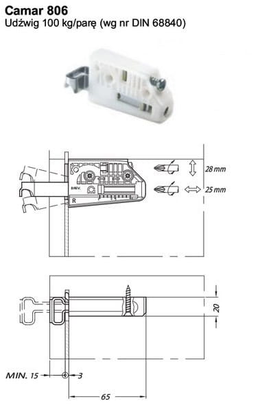 Zawieszka meblowa CAMAR 806 100kg, prawa, bez zaślepki. 200 sztuk
