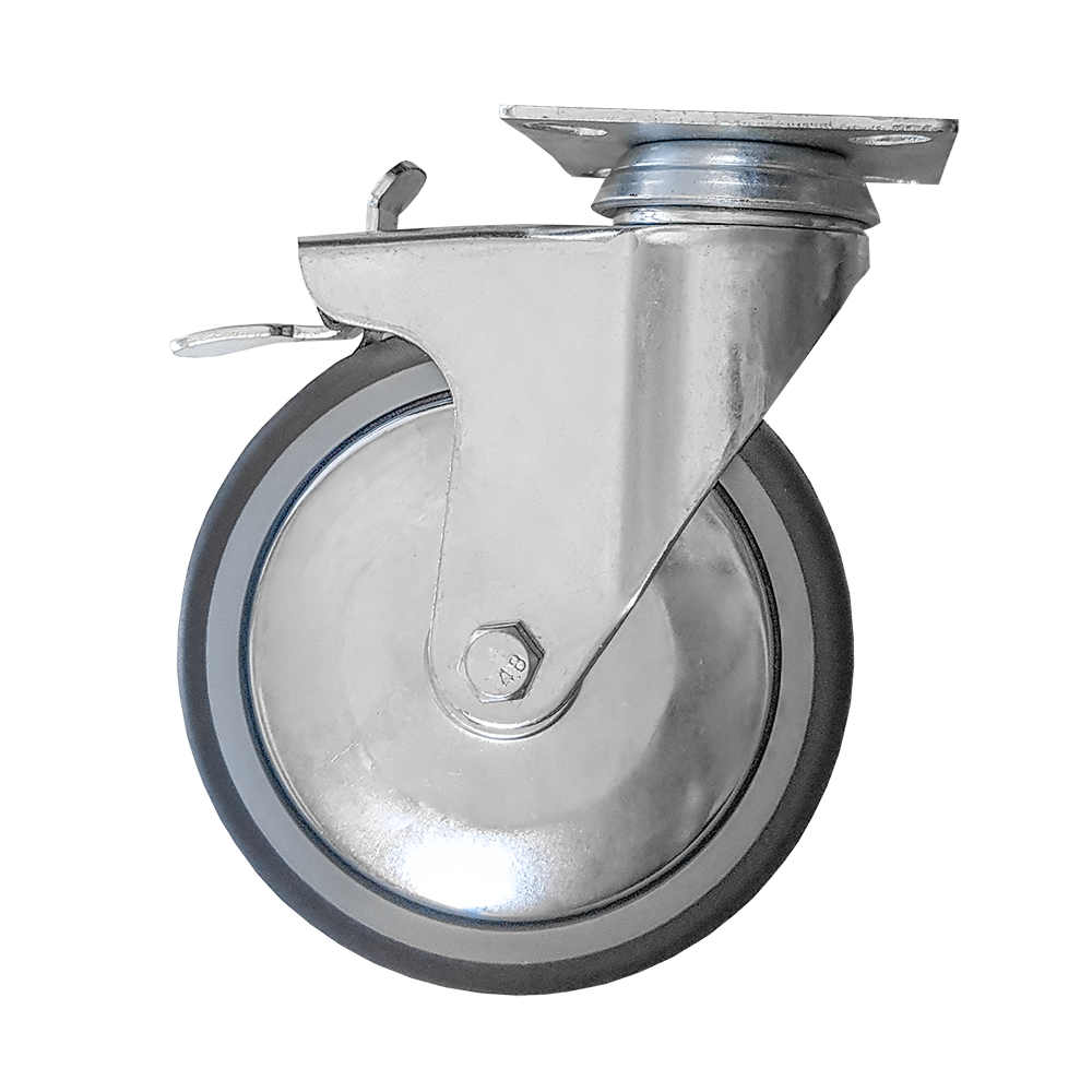 Kółko meblowe do wózków przemysłowych, schodów magazynowych. Bardzo wytrzymała konstrukcja i ekstremalnie mocny, mechaniczny system hamulca.