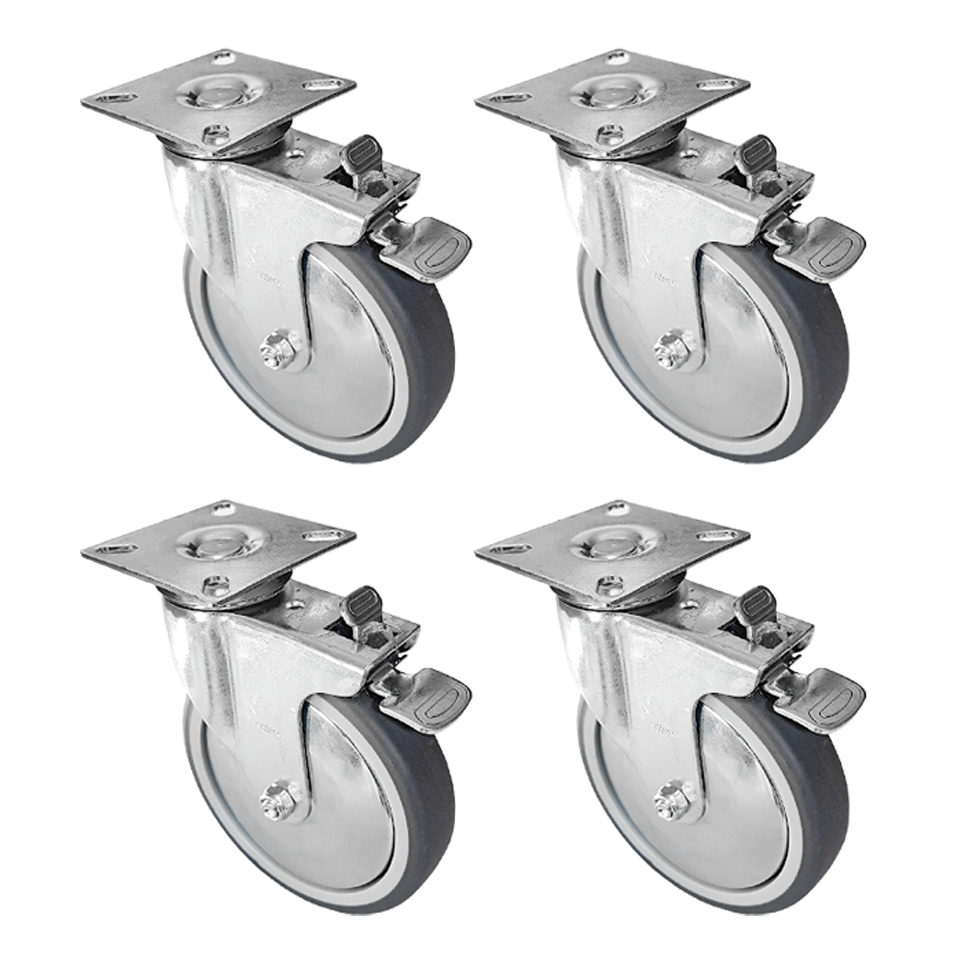 Zestaw jezdny, Kółko meblowe Fi 125, Gumowane, łożysko kulkowe, z hamulcem, 4 sztuki