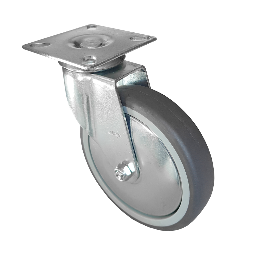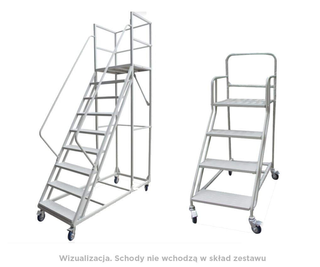 Zestaw jezdny do wózków i schodów przemysłowych oraz wszędzie tam gdzie liczy się wytrzymałość. Ogumowane kółka nie rysują powierzchni. Łożyska kulkowe działają precyzyjnie, nie posiadają luzów. Tylne kółka posiadają ekstremalnie wytrzymały hamulec mechaniczny
