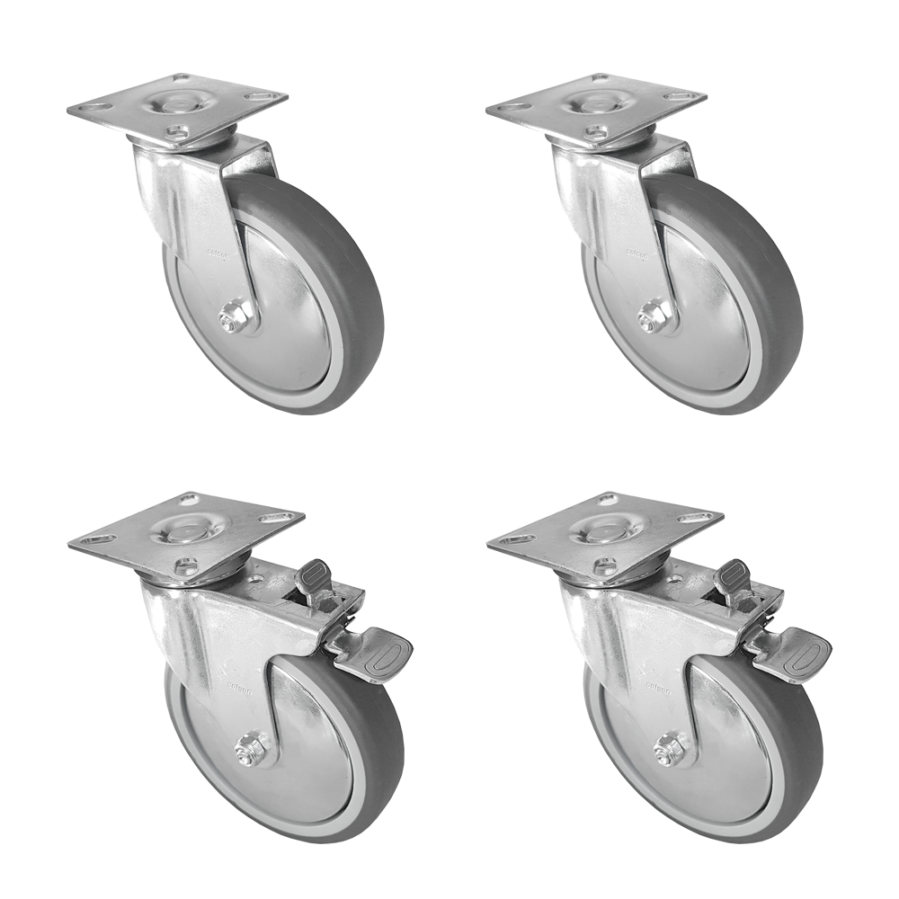Zestaw jezdny Fi 125, Gumowane, łożysko kulkowe, 2 x z hamulcem + 2 x bez