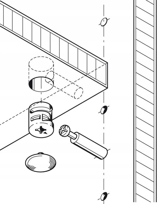 Złącze mimośrodowe marki HAFELE, mimośród MINIFIX Hafele + trzpień do płyty 18mm – 100 szt
