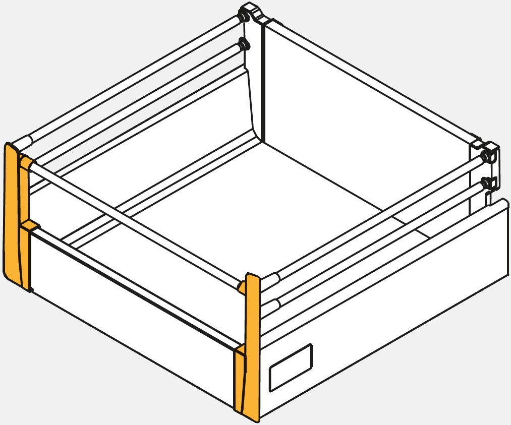 Złączka ta jest jednym z elementów szuflady wewnętrznej systemu Modern Box, za jej pomocą łączymy panel przedni z szufladą.