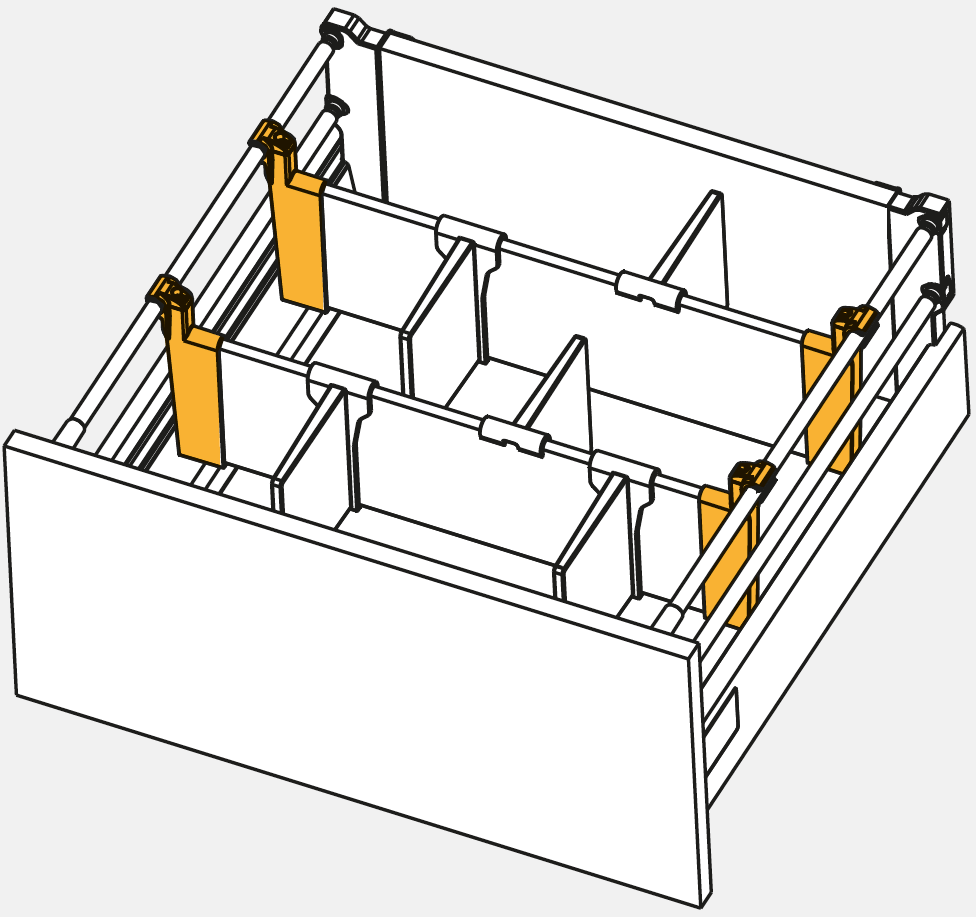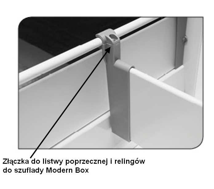 Złączka ta służy do połączenia listwy poprzecznej, relingów w systemie szuflad Modern Box, wpływa to na łatwą organizacje przestrzeni wewnątrz szuflady.