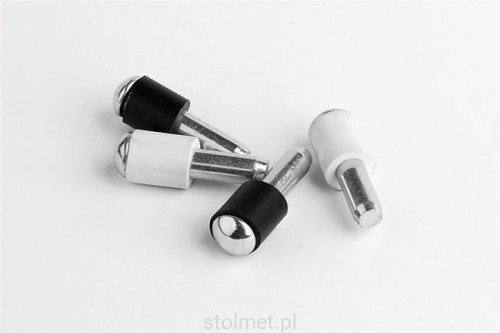 Podpórka bolcowa to jedna z najprostszych metod do osadzenia półki w meblu. Mocowane do nawierconych wcześniej otworów stanowią bardzo mocne podparcie osadzonej płyty. Dzięki kołnierzowi podpórka nie rysuje płyty na niej opartej oraz maskuje element, efekt uzyskiwany jest poprzez dobranie odpowiedniego koloru do koloru płyty wiórowej.