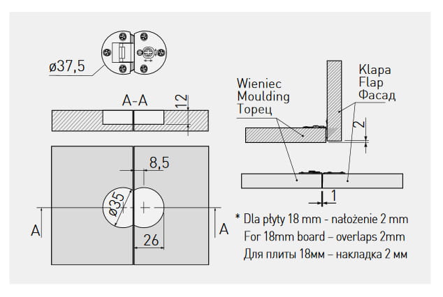 Zawias jest uniwersalny ze względu na szeroką funkcjonalność.